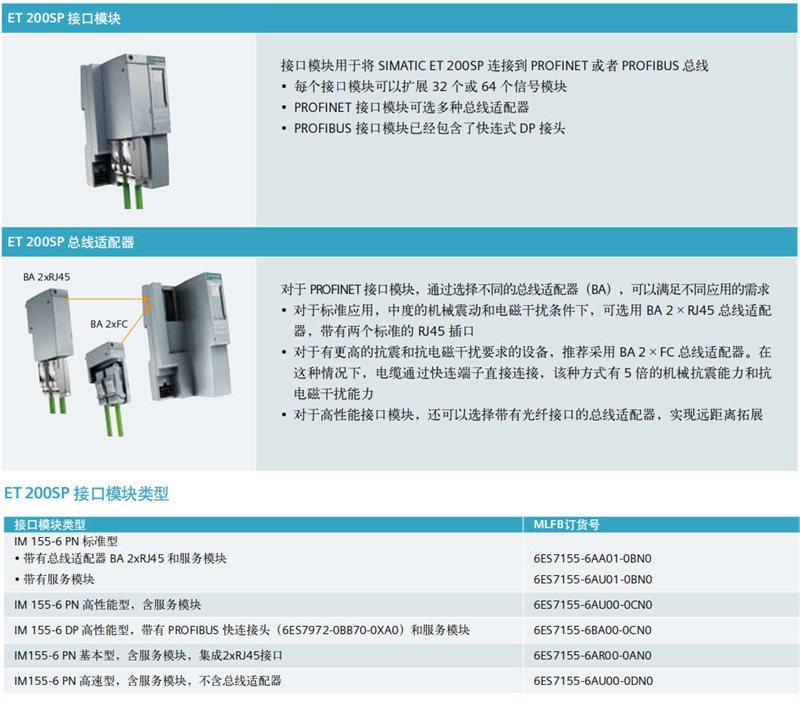 | 接口模块 | 6ES7155-6AA01-0BN0 | IM155-6 PN 标准型, 含服务模块和总线适配器BA 2×RJ45(6ES71556AA000BN0升级型号) | |