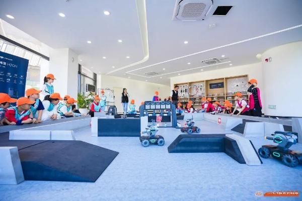 酷炫的造型一下子就吸引了孩子们的注意,纷纷围观了起来。看到孩子们如此热情,老师也为大家介绍起了机甲大师,并组织大家开展竞速实操。
