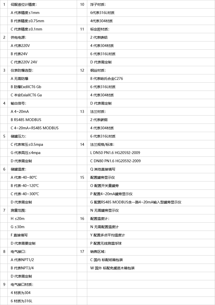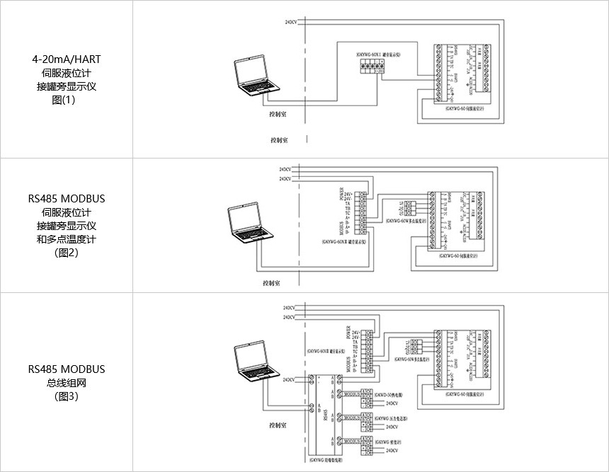 伺服液位计通信方式4-20mA/HART、RS485 MODBUS