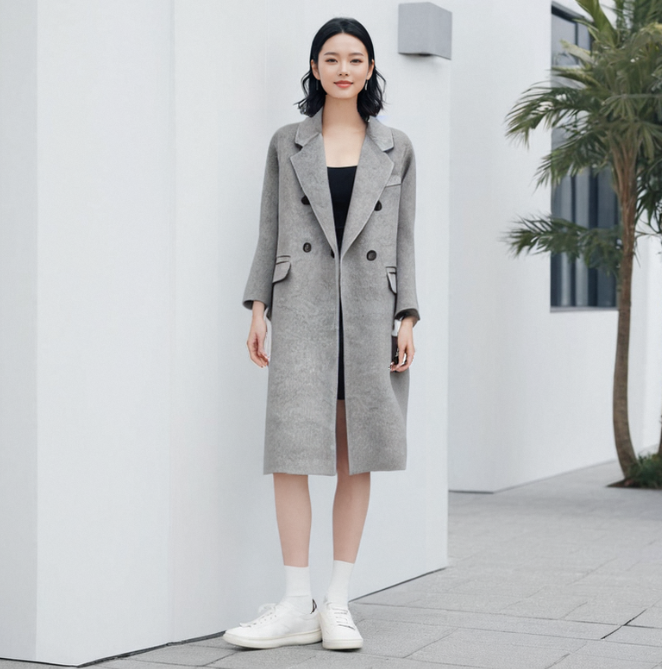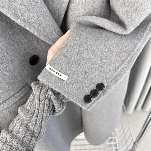 温碧霞自创IRENENA服装秋冬新款韩版毛呢外套高级灰呢子大衣
