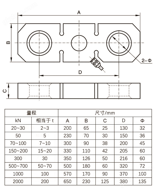 额定载荷: 20,30,50,70,100,150,200,300,500,700,1000,2000(kN)